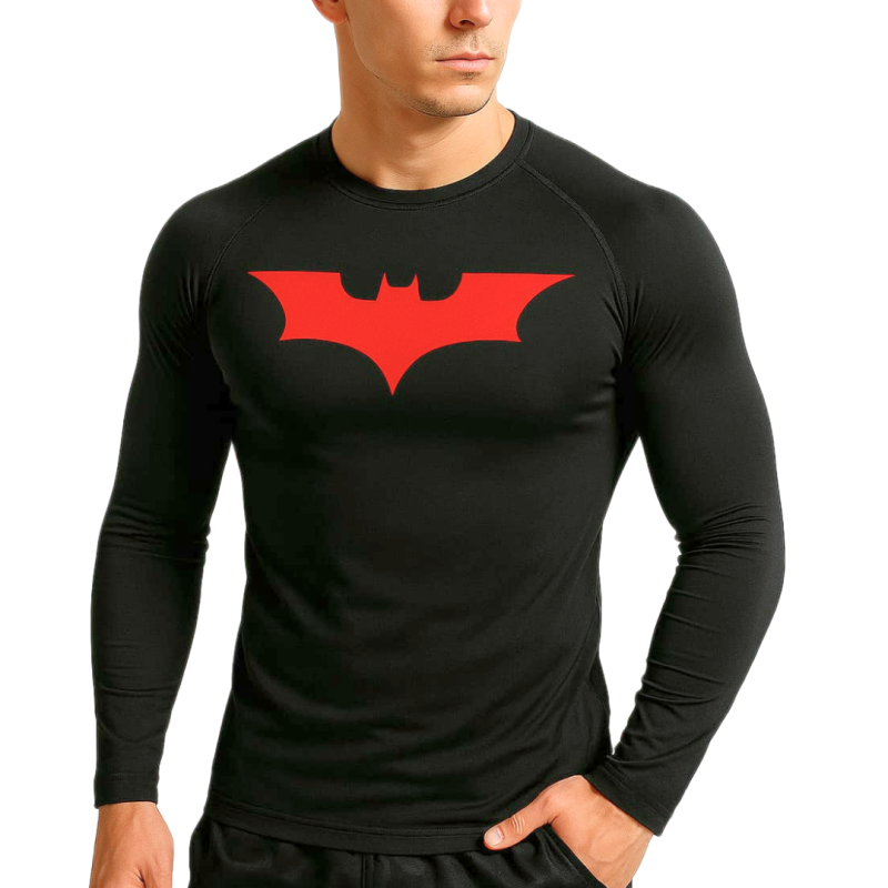 53A - Camiseta Negra Rojo Bat Manga Larga